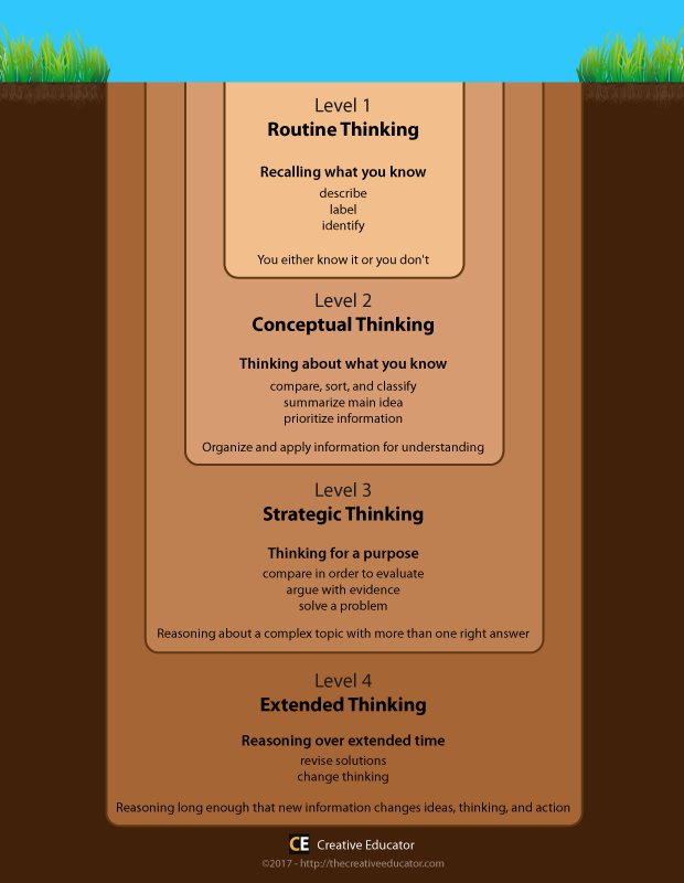 By asking students to think for a purpose moves your instructional tasks up to level three of Webb’s Depth of Knowledge. Connecting student work and effort to the world beyond the classroom gives a reason for them to care and a motivation to work hard.